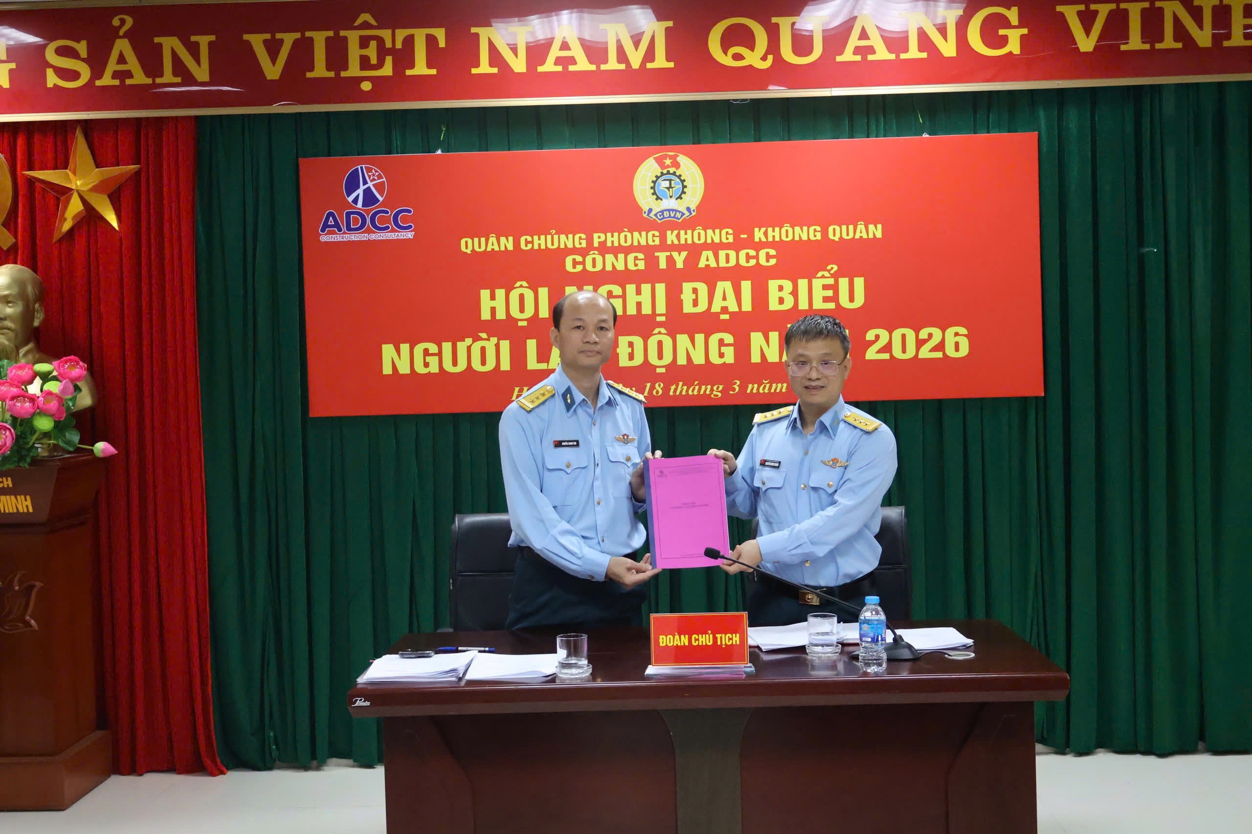Ngày 18/3/2026, Công ty ADCC tổ chức Hội nghị Đại biểu Người lao động năm 2026. Hội nghị do đồng chí Thượng tá Nguyễn Đình Chung, Giám đốc Công ty – Đại diện người sử dụng lao động và đồng chí Thượng tá Nguyễn Thanh Tâm, Chủ tịch Công đoàn – Đại diện tập thể người lao động đồng chủ trì; dự Hội nghị có đồng chí Đại tá Đồng Quốc Hùng – Chủ tịch Công ty và các đồng chí trong Thường vụ, Đảng ủy, Ban Giám đốc Công ty, Ban Chấp hành Công đoàn và 80 đại biểu đại diện cho hơn 200 cán bộ, nhân viên và người lao động trong toàn Công ty.